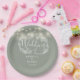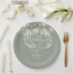 Ces assiettes en papier design avec de jolies lampes à cordes et un floral dessiné à la main peuvent être personnalisées avec vos informations en lettrage blanc chic sur un arrière - plan vert sage. Conçu par Thisisnotme©