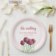 Assiettes En Carton Mariage violet Alliances roses Fleur Aquarelle Squ