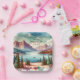Assiettes En Carton Mariage Vues Montagnardes à l'Aquarelle