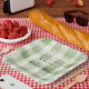 Assiettes En Carton Mariage Western Green Cream Carreaux Rayures Fête