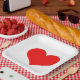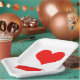 Imprimé avec un grand motif de coeur rouge sur fond blanc uni.