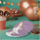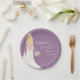 Cette assiette en papier sur le thème bohème présente un gracieux rideau de perles et une superbe mariée bohème aux cheveux blonds dans une délicate robe de mariée en dentelle. Ornée d'un bouquet luxuriant de roses, d'herbe de pampa, d'eucalyptus et de renoncules.