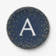 Assiettes En Carton Marine bleu et or Confetti Monogramme Anniversaire