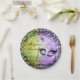 Mascarade verte & violette Mascarade Masque Mardi Gras Plaques de fête. Customisez avec tout texte. Des éléments correspondants sont disponibles.