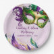 Réception de mariage festive sur le thème de Mardi Gras à la Nouvelle-Orléans en vert, or et violet, les couleurs traditionnelles du carnaval de Fat Tuesday. Personnalisez le texte du devant.