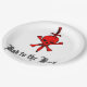 Plaque déplaisante d'Halloween, cette conception présente un crâne rouge avec une épée à travers elle et la légende : 'Mauvais à l'os'. Cette assiette va vraiment mettre le goth dans votre fête d'Halloween ! (Attention, il y a maintenant aussi une tasse qui correspond à l'assiette, que vous pouvez consulter ici : https://www.zazzle.com/spooky_red_skull_mug-168226149295596650 ).