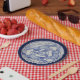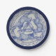 Assiettes En Carton Médaillon de trois lièvres bleu carreaux blancs