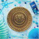 Ensemble de huit plaques en papier de 9" avec l'image d'un médaillon d'or orné qui serait antique. Voir le dessous de verre en céramique carré et en grès rond correspondant. Voir la collection Gemstones & Medallions Plate dans la section HOME.