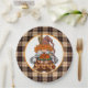 Un Pays Brown Plaid Plaqué Plaque Papier Thanksgiving Avec Un Gnome Mignonne Tenant Une Turquie Cuite