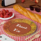 Organisez un repas d'appréciation ou un pique-nique et envoyez un message de remerciement avec ces plaques en papier avec de belles couleurs automnales d'orange, jaune et marron. L'arrière - plan affiche des lignes horizontales minces aux couleurs automnales qui ressemblent à de la paille ou à de l'herbe séchée. Un grand cercle au centre en orange rouille fournit l'arrière - plan solide pour le "Merci" qui peut facilement être customisé si vous le désirez. Photo originale - C. McGouldrick