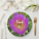 Appelez vos employés ou clients ensemble pour une célébration d'appréciation. Personnalisez votre repas, buffet ou cocktail-heure avec ces assiettes en papier ornées d'une grande fleur de plage violet. La photo florale présente de longs pétales de fleurs violettes au centre jaune clair. La fleur est entourée de feuilles vert clair. "Merci" apparaît dans le centre en police blanche qui peut être facilement customisé si vous le désirez.