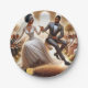De belles assiettes en papier mariage qui complètent le décor de votre table. Belle mariée afro-américaine et belle Groom sautant le balai lors de leur cérémonie mariage. Sauter le balai est une façon de rendre hommage à nos ancêtres. C'est aussi un symbole qui laisse tomber le passé, et qui commence une nouvelle vie ensemble.