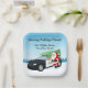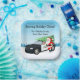 These charming Christmas paper plates feature Santa and his trusty red-nosed reindeer partner leaning against a police car topped with a festive Christmas tree. Add your own holiday message and family name to make your celebration extra special and uniquely yours.