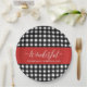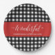 Célébrez les vacances avec style avec cette assiette de plaid de buffles en noir, blanc et rouge festif. Ajoutez votre nom de famille ou d'entreprise pour en faire un décor de fête unique.
