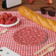 Assiettes En Carton Mi-Siècle Rétro Starbursts Motif Rouge