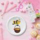 Assiettes En Carton Mignonne Bee transportant un pot de miel avec fleu