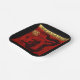 Dans un carré sont un Dragon noir coupé en papier, placé au centre en regardant un ornement doré à l'intérieur duquel est le deuxième dragon avec idéogramme. Derrière la scène, il y a un arrière - plan rouge sur lequel des lettres décoratives et ornées forment les mots : DRAGON YEAR. Conception sur plaque de papier carré. Correspondance papier serviette et tasse de papier, carte de voeux, carte postale de vacances, autocollant et plus... Parfait pour le Nouvel An Chinois du Dragon 2024 ou anniversaire (personnes nées dans l'Année du Dragon).