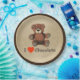 Parfait pour les fêtes d'anniversaire. Comprend un ours en peluche, qui semble plus qu'un peu inquiet que quelqu'un puisse prendre son chocolat, un coeur rouge, et le slogan " ; I Heart (Love) Chocolate.".