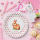 Assiettes En Carton Mignonne lapin d'anniversaire & Fleurs en blanc