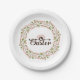 Mignonne couronne verte et rouge et lapin blanc sur arrière - plan blanc - Bonne Pâques. Modèle de plaque papier personnalisable