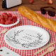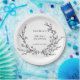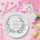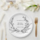 Minimalist black and white floral line art bridal shower paper plates with elegant botanical design for table settings. Text editable via Template Objects in the Zazzle editor.