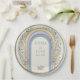 Elevate your reception tables with these chic and modern wedding paper plates. Featuring a stylish layered arch design in soft shades of butter yellow, lavender, and dusty blue, these plates blend a minimalist aesthetic with organic botanical charm. Delicate eucalyptus leaves and dried grass illustrations frame the arches, making them a perfect fit for boho, garden, or spring-themed weddings. These high-quality disposable plates offer a sophisticated, high-end look while ensuring cleanup is effortless for your wedding reception, bridal shower, or engagement party.