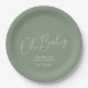 Assiettes En Carton Minimalist Script Sage Green Oh Baby Shower date