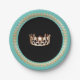Ces assiettes en papier festives de concours sont parfaites pour servir un peu de plaisir (et facile à nettoyer aussi) pour votre prochain concours se réunir. Ajoutez votre thème de concours ou votre nom de concours si vous le souhaitez. Voici une jante Turquoise et une couronne dorée au centre sur un arrière - plan noir chic. Trim régal de couleur or sur la jante. Personnalisez en choisissant l'option de filtre pour changer la couleur de la couronne et de la bordure, le "O" pour changer la couleur de la jante, etc. ou acheter comme prévu.