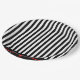 Amusez-vous dans le style avec ces belles assiettes. Ce design mod a des rayures verticales en noir et blanc avec un brin de détails rouges et un coeur rouge mignon.