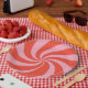 Assiettes En Carton Mod Wavy Retro Noël bonbon rose rouge Vacances