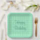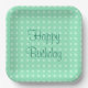 Modèle vert menthe personnalisé Texte Joyeux Anniversaire Points Rustique Polka Élégant Assiette en papier carré.