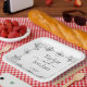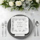 The centerpiece of the plate features the names of the couple in a sophisticated mix of classic serif and flowing handwritten script. Below the names, your wedding date is presented in a clean, professional font. The timeless black and white monochrome palette ensures these plates will complement any wedding theme, from a chic urban loft to a classic outdoor ceremony. These high-quality plates offer a practical yet beautiful way to maintain a cohesive design across your entire reception.