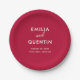 Wedding paper plates to match our Wavy Frame Retro Wedding collection. This design features the couple's names in chic typography. The text is in cream color against a retro cherry-red background. Custom paper plates, perfect for serving snacks, desserts, and more. View the collection linked on this page for the full wedding suite. Feel free to message me with any questions, I'll be happy to help!