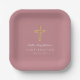 Modern Pink Religious Cross Girl Confirmation Paper Plates.