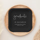 Add a chic, modern touch to your graduation celebration with these personalized black graduation paper plates. Featuring a handwritten script “graduate” and a clean minimalist layout, these plates are perfect for high school or college graduation parties, open houses, and family gatherings.