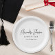 Design minimaliste élégant Noir et blanc élégant Fête de graduation de script moderne Célébrez votre diplômé dans le style avec ce script moderne tendance plaques de papier de fête de graduation avec un arrière - plan blanc et élégant, élégant, noir élégant. Le design minimaliste est parfait pour une fête chic et contemporaine de remise des diplômes. Personnalisez facilement en utilisant nos modèles personnalisés, ajoutez en quelques secondes le nom de votre diplômé, du lycée ou du collège et de l’année de cours. Idéal pour les fêtes de fin d'études, les journées portes ouvertes et les événements mémorables. Conçu par l'artiste Catherine Sweetman, ce design exclusif apporte une sophistication moderne à votre décor de table. Parfait pour ceux qui recherchent une esthétique propre et classe avec une touche personnelle.