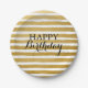 Assiettes En Carton Moderne Chic Gold Stripe joyeuse fête d'anniversai