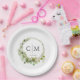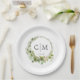 Assiettes En Carton Moderne, élégant monogramme, mariage eucalyptus
