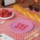 Assiettes En Carton Moderne Elégant rose rouge gras 21e anniversaire