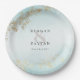 Plaque en papier Mariage Turquoise Mist Luxe Gold Flecks. Élégantes assiettes en papier mariage contemporain et raffinées, faites dans un brouillard d'aquarelle en marbre sombre, aux éclats dorés luxueux. Ce design mariage original et rêveur personnalisé peut être facilement personnalisé avec vos propres détails mariages.