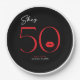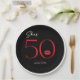 Moderne et chic, ce design de plaque de papier d'anniversaire déclare, "elle a 50" et combine le noir et blanc classique avec des accents de rouge vif, avec une paire de lèvres ludique. Le design minimal est un design simple et amusant pour célébrer l'anniversaire de l'événement. Créé par Simply Farmhouse Press.
