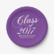 Célébrez votre diplôme d'études secondaires ou collégiales avec des assiettes personnalisées! La classe personnalisée violet de 2017 plaques de papier sera un succès à votre fête de graduation! Les plaques de graduation comportent un arrière - plan violet, "class of 2017" dans une police de script élégante, et un espace réservé pour votre texte personnalisé.