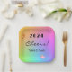 Arrière - plan arc-en-ciel coloré avec des étoiles vives, Année "Cheers" et nom(s) d'hôte décorent ces assiettes festives carrés de 7". Modifier l'année, changer le nom en utilisant le Modèle facile fourni. carré de 9", plaques rondes de 7" et 9" et bol de 7" sont également disponibles. Vendu en séries de 8 et imprimé sur stock papier durable. Consultez "À propos de ce produit" à côté pour plus d'informations et de soins.