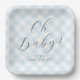 Ces assiettes en papier simples mais élégantes présentent un doux arrière - plan bleu en vichy bébé avec un élégant script de calligraphie qui dit "Oh Baby". Les éléments de coordination sont disponibles dans la collection.