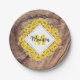 Assiettes En Carton Monogram de Rustic Sunflowers & Wood Texture