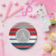 Design à thème nautique avec décoration monographique en forme ronde sur arrière - plan rayé bleu, blanc, rouge et gris