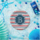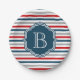 Design à thème nautique avec décoration monogramme sur arrière - plan rayé bleu, blanc, rouge et gris
