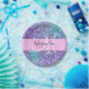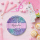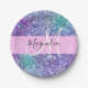 Glam violet, bleu et vert parties scintillant scintille le nom monogramme et les plaques de papier initial. Votre nom personnalisé et votre monogramme sont écrits dans un élégant script écrit à la main avec un arrière - plan rose clair. Vous pouvez modifier la couleur du texte, le style et la taille de police à l'aide de l'option personnaliser.