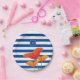 Assiettes En Carton Monogramme à rayures bleu chic