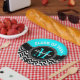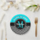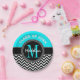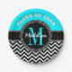 Elégant aqua et chevron noir motif avec le nom de la fille d'anniversaire et monogramme au centre.